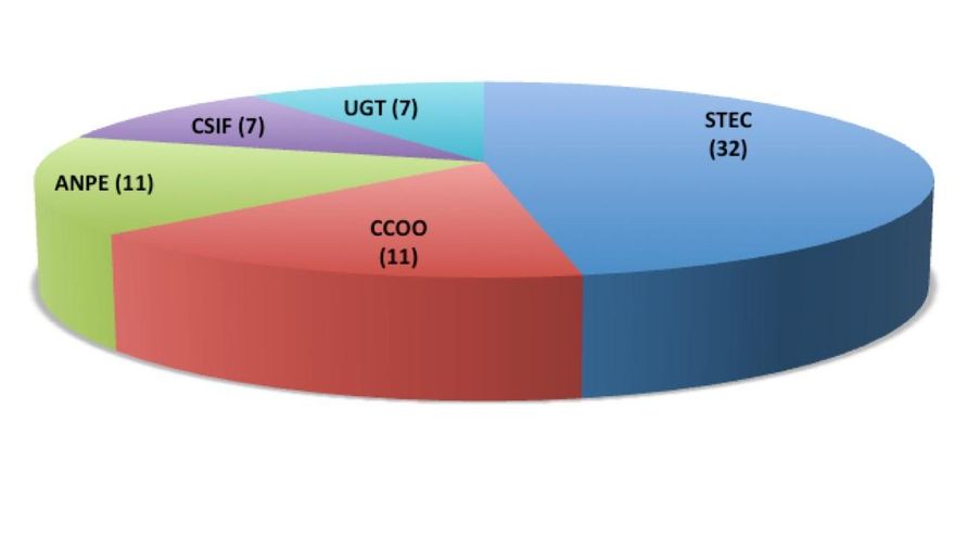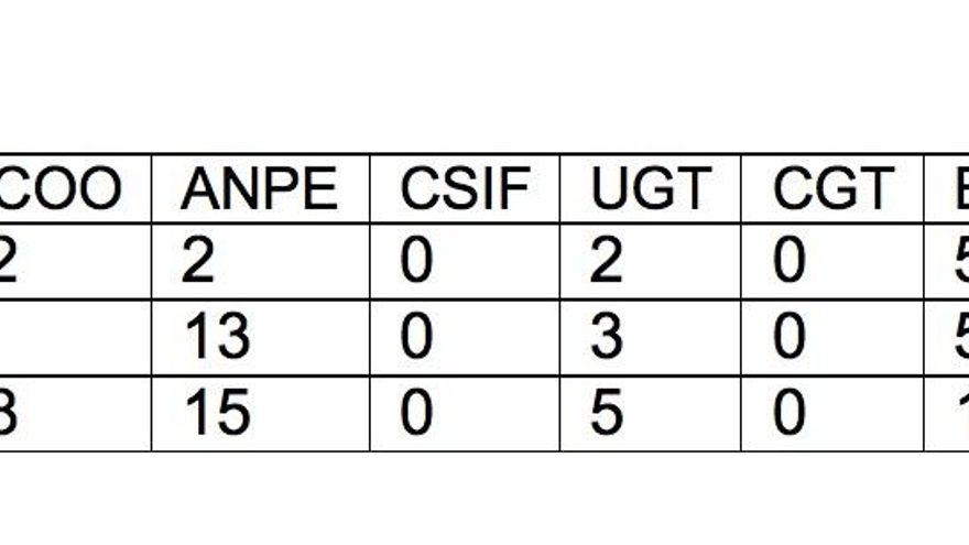 Por detrás se sitúan EA-C, con 12, ANPE (8); UCPL (6) y UGT (4). CSIF y Sepca no consiguen votos suficientes para alcanzar representación.
