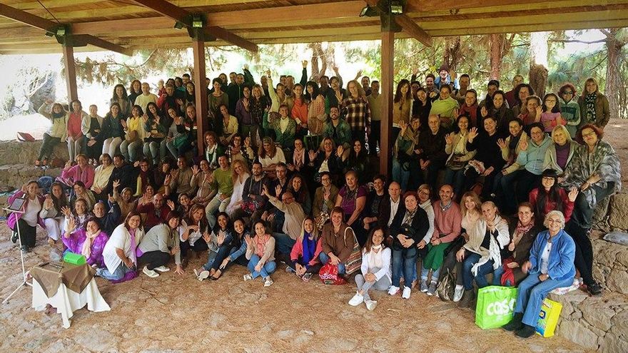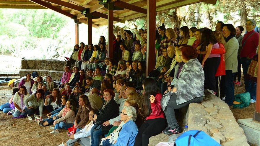 La madre Luz. Así llaman a Mariluz sus alumnos más allegados, quienes reconocen que este proyecto, englobado bajo el nombre Artisofía, pretende enseñar a aprovechar la energía de la que estamos formados. Mariluz se reúne con ellos al modo en que lo hacían los filósofos griegos que se rodeaban de discípulos y fundaban escuelas. Platón llamó a la suya Academia, creando así el modelo que inspiraría a las futuras universidades. Algunos sentados en las gradas del Tagoror del Jardín Canario, cubiertos con mantas escuchan atentos, otros prefieren tumbarse en la pinocha sobre esterillas aislantes, cada cual a su manera, asimila y opina. “Yo vine la primera vez y tuve que repetir. Se trata de encontrar lo que para ti es verdad, fuera de lo mental. No es una regla matemática, no lo puedes aprender sólo con la razón”, comenta una de sus alumnas.