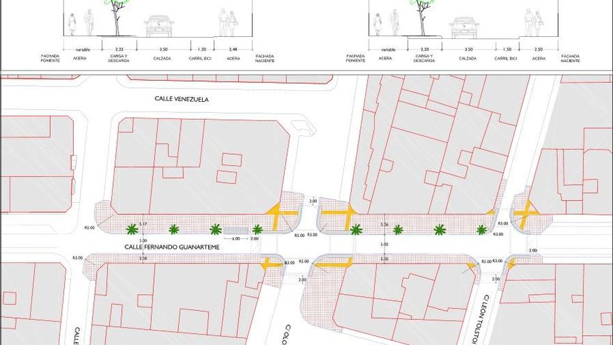 Por otro lado, este proyecto busca la generación de itinerarios peatonales que faciliten la movilidad por la ciudad, con fortalecimiento del carácter comercial de la calle, la pacificación del tráfico y la eliminación de barreras arquitectónicas tanto para las personas que disponen de algún tipo de limitación motriz o visual, como para el resto de ciudadanos, explica Sabroso. La nueva configuración de Fernando Guanarteme hará que “una vía con importantes dotaciones, como la Escuela Oficial de Idiomas, donde actualmente hay aceras tan estrechas que prácticamente son intransitables, con los problemas de seguridad y movilidad que acarrea” permita a los ciudadanos transitar por este importante barrio con comodidad y seguridad.