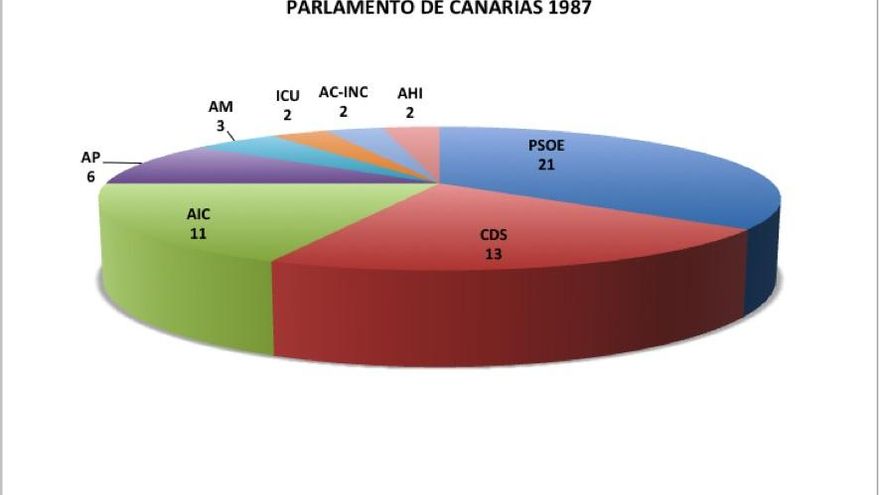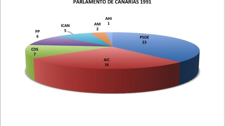 La distribución de escaños que arrojan las urnas es la siguiente: PSOE (23, con un 33,28% de los votos), AIC (16), CDS (7), PP (6), ICAN (5), AM (2) y AHI (1).