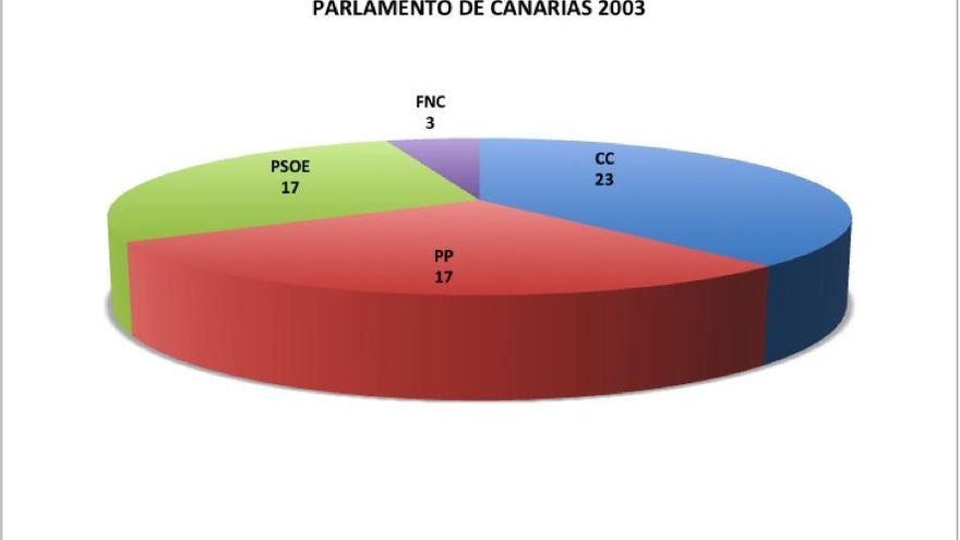 Adán Martín alcanza la Presidencia en los comicios de mayo de 2003. Su partido, CC, había ganado las elecciones con 21 escaños (33,33% de los sufragios), por delante de PP y PSOE, que empatan a 17, y los tres que obtiene la Federación Nacionalista Canaria (FNC), todos del lanzaroteño PIL de Dimas Martín. Se constituyen tres grupos más el mixto. El presidente del Parlamento será Gabriel Mato, del PP.