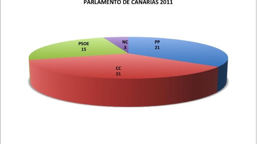 La VIIIª legislatura autonómica nace con un Parlamento de Canarias con la siguiente composición tras los comicios de mayo de 2011: PP (21 diputados), CC (21), PSOE (15) y NC (3, uno de ellos del PIL). Se conforman tres grupos parlamentarios más el mixto. Antonio Castro repite al frente del Parlamento canario.