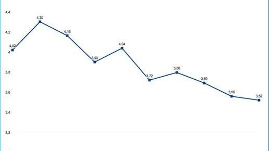 Pero lejos de mejorar, la Educación perderá peso respecto al PIB español en los próximos ejercicios. Los datos que el Gobierno español ha enviado a Bruselas señalan que en este 2017 se situará en el 4% del PIB y que en el próximo ejercicio presupuestario se llegará al 3,8%.