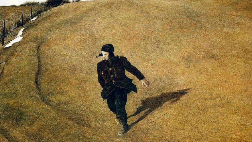 A Andrew Wyeth le gustaba pasear por las praderas y bosques próximos a su casa de Chadds Ford, Pensilvania. Los paseos eran una simple excusa para poder estar a solas, así de grande era su necesidad de abstracción. Su mayor deseo era un imposible: poder pintar sin estar presente, que sólo sus manos formasen parte de la realidad, dejando al resto de su ser al margen. Un sueño inalcanzable pero al que conseguía aproximarse recorriendo aquellos prados: “Cuando estoy solo en el bosque, caminando a través del campo, me olvido de todo lo relacionado conmigo mismo. Dejo de existir”.
