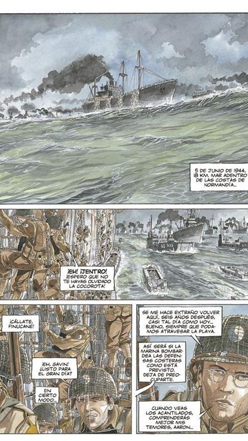 Gavin Jentro regresa a Francia, seis años después, durante el desembarco de Normadía, tal y como se ve en la primera página del álbum Airborne 44. Omaha Beach.