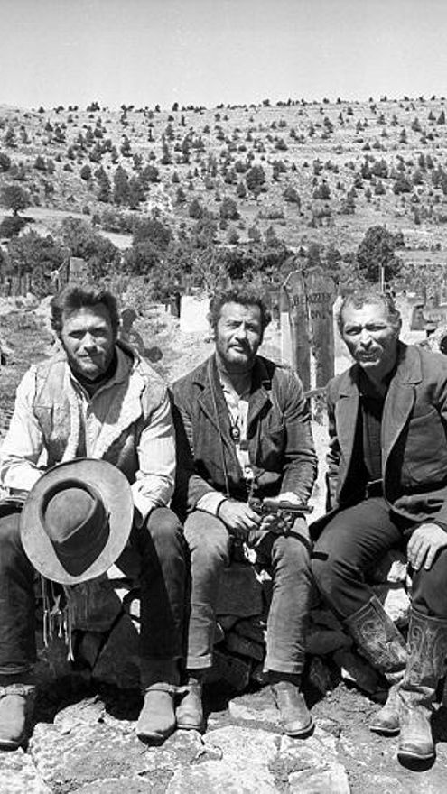 Clint Eastwood, Eli Wallach y Lee Van Cleef en el cementerio de Sad Hill © Zapruder Pictures, 2018.
