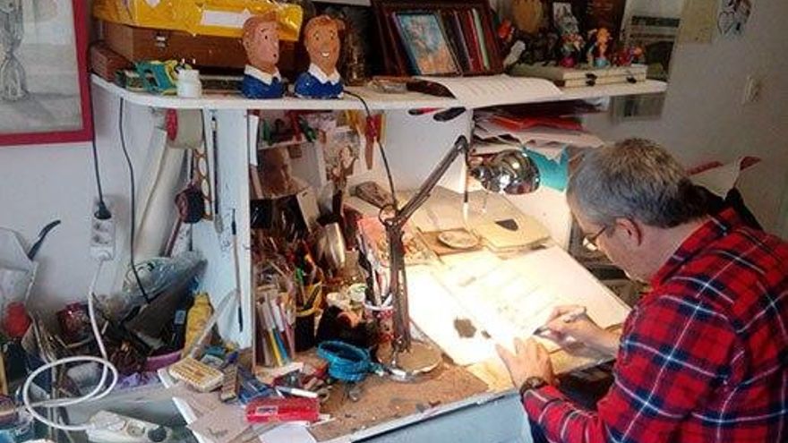 Su estudio es un pequeño museo en el que predominan los colores, los pinceles y muy buenos recuerdos. Armiche transmite tranquilidad, la misma con la que diseña sus trabajos, desde cómics hasta cortometrajes, todos ellos muy vinculados a El Hierro como Cuentos de Bajada en el que sus protagonistas fueron los propios vecinos de la isla o la escultura que nos da la bienvenida al entrar a la capital herreña en homenaje a la Bajada. Y precisamente por esta última obra citada comenzamos a preguntarle.
