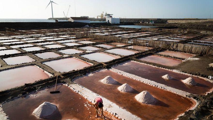 Y es que un elemento que llama la atención en las salinas es la formación de aguas pintas en la superficie de los tomaderos, o maretones, que pueden tornarse rojizas, anaranjadas o rosas, los técnicos del Cabildo las llevaron para su análisis a un centro de algología aplicada y encontraron altas concentraciones del alga ‘dunaliella salina’, el único ser vivo que tolera un ambiente hipersalino y que subsiste excretando caroteno, es decir, el principio activo de la vitamina A, de ahí esa gama de colores.
