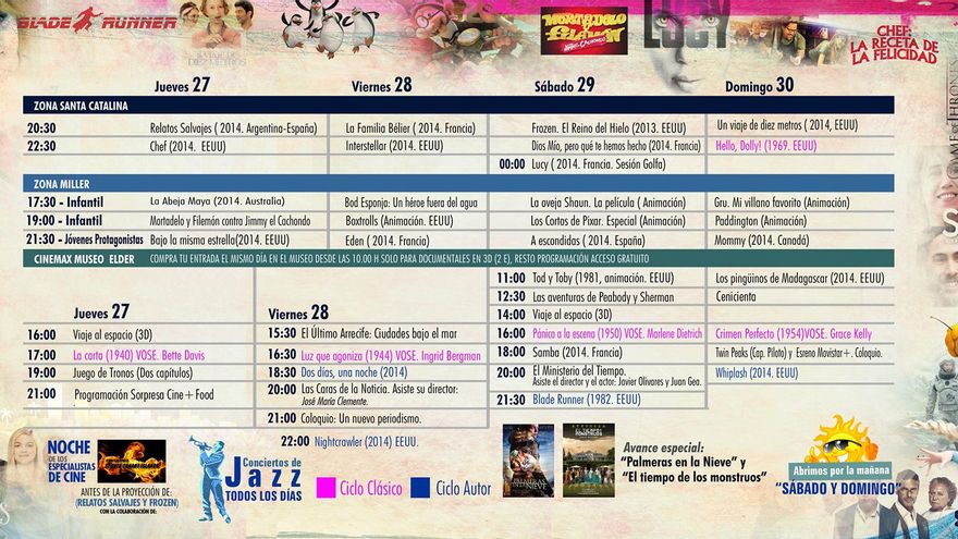 Unas 50 películas completan el programa de Cine+Food, que este año potencia sus secciones Cine al aire libre (parque Santa Catalina), Infantil y juvenil (edificio Miller) y Cine en 3D (Museo Elder), con la ampliación de contenidos dedicados al cine clásico y al documental y abre una ventana a las series de televisión, de la mano de Movistar +.