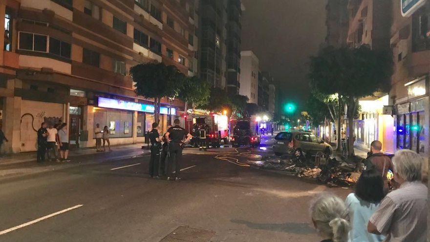 El suceso se ha registrado en torno a las 23.00 horas de este viernes, según ha informado la Policía Local, que ha actuado en el incidente junto a los bomberos de la capital grancanaria, que han extinguido un fuego que no ha dejado más daños materiales pese a que cerca del lugar se encontraban estacionados varios vehículos.
