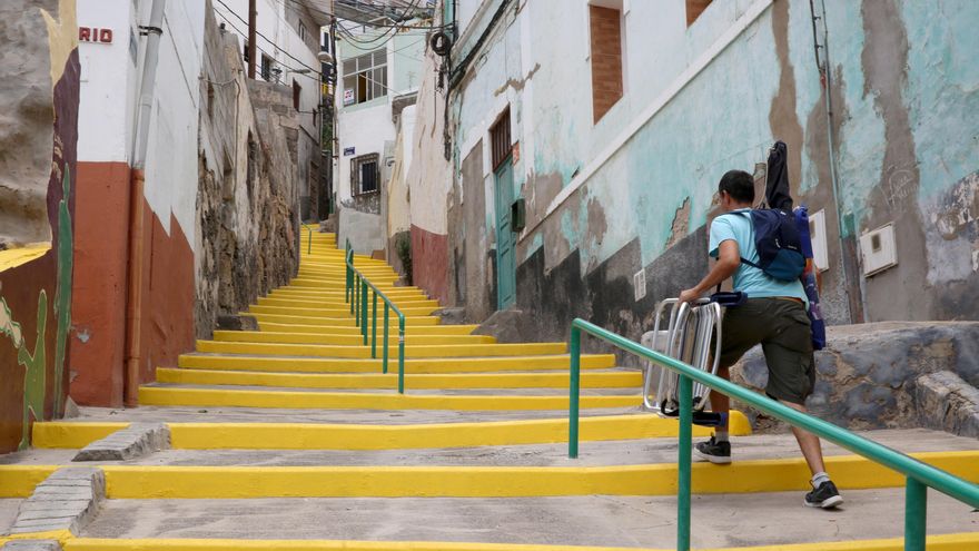 Un amarillo intenso inunda desde esta semana la calle Nogal, una de las principales arterias del Risco de San Nicolás. Un color que sirve como nexo de todas las intervenciones realizadas a lo largo de cincos días en este céntrico barrio de la capital grancanaria con motivo del X Encuentro Internacional de Arquitecturas Colectivas, un evento que ha atraído a más de 80 colectivos internacionales hasta este rincón de la ciudad.
