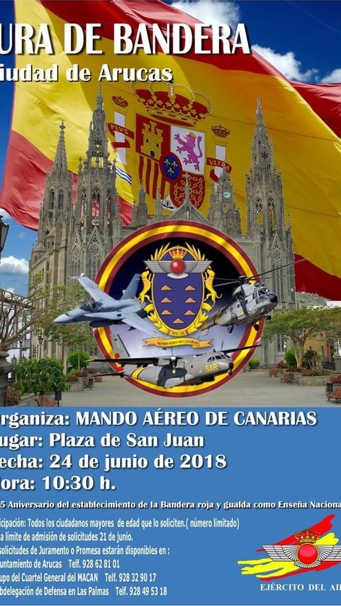 Las solicitudes de juramento o promesa pueden realizarse a través del Ayuntamiento de Arucas (928 62 81 01) el grupo del Cuartel General del Macan (928 32 90 17) y la subdelegación de Defensa de Las Palmas (928 49 53 18).