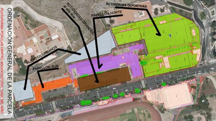 Desde el comité sugieren que la gestión del centro sea de forma comunitaria con los habitantes del distrito y que se conformen cooperativas de servicios que sean dirigidas por personas que disponen de pocas posibilidades de inserción laboral debido a la edad o su escasa formación, entre otros aspectos. El proyecto, aparte de dotar al Cono Sur de un gran centro sociocultural, pretende que la Casa del Niño cubra las carencias más amplias del vecindario.