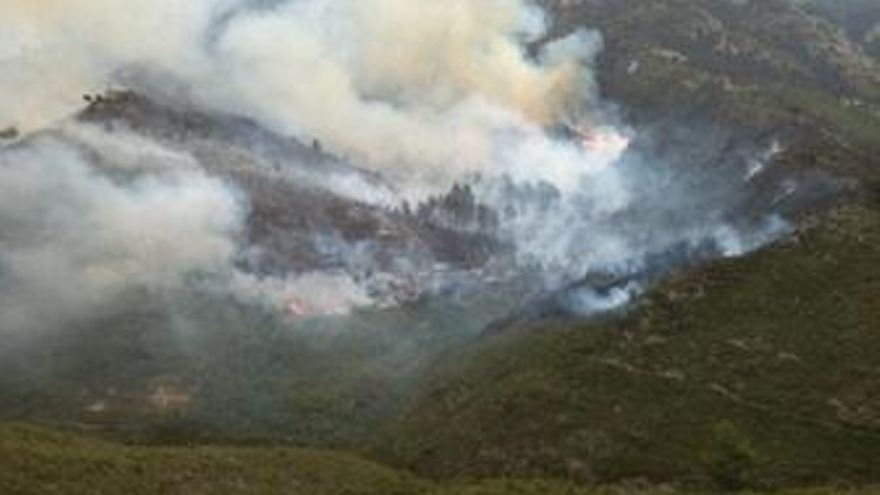 Los bomberos continúan remojando el incendio de Rasquera (Tarragona)