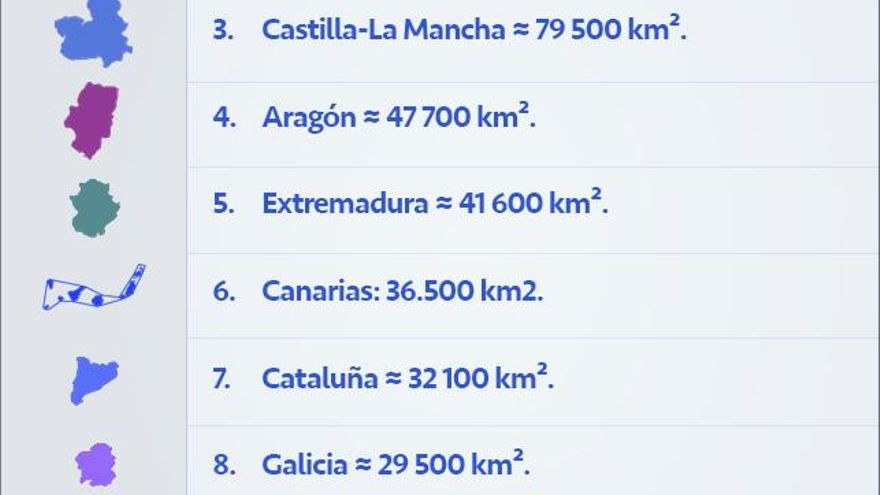 El día que entró en vigor el nuevo Estatuto de Autonomía de Canarias, el Archipiélago pasó de ser la decimotercera comunidad con mayor superficie a ocupar la sexta posición en extensión. Ese 6 de noviembre de 2018, las aguas integradas en el perímetro definido en el anexo del documento eran reconocidas como parte de su territorio. Una línea imaginaria de 1.200 kilómetros de extensión -que comienza y acaba en Alegranza- incrementa la superficie de Canarias de 7.450 a 36.500 kilómetros cuadrados, superando a comunidades como Cataluña (32.100) o Galicia (29.500).