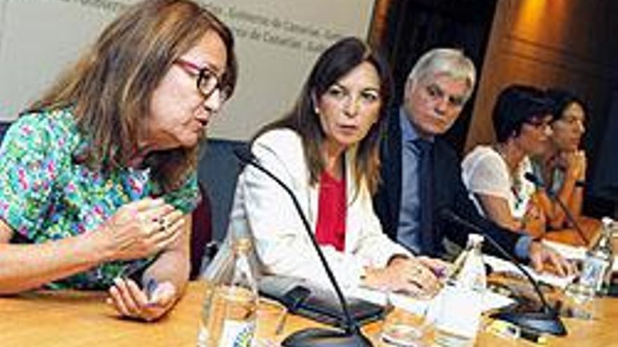 La consejera de Sanidad del Gobierno canario, Brígida Mendoza (CC), junto al vicepresidente del Ejecutivo regional, José Miguel Pérez (PSOE), y representantes de colectivos feministas, gays y lesbianas en las islas, han manifestado en rueda de prensa su oposición “frontal” al cambio introducido en la cartera básica de sanidad, pues solo mujeres estériles podrán acceder a estos tratamientos.