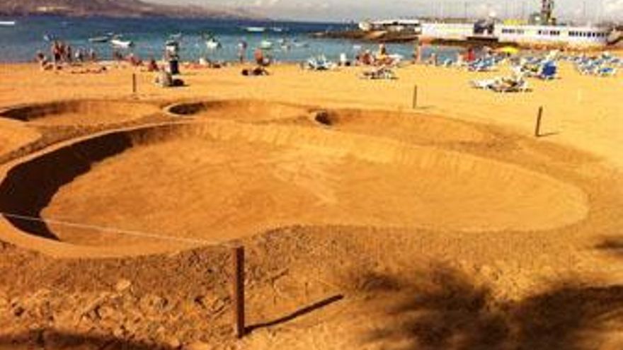 Un chihuahua gigante 'pisa' la arena de Las Canteras