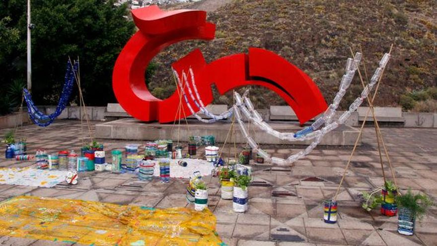 Las arquitectas Marta Torrecilla y Eneritz Hernández fueron las encargadas de dirigir el taller, que comenzó a las 9.00 y se prolongó hasta pasadas las 13.30 horas, momento en el que a los pies de la escultura “Lady Tenerife”, obra de Martín Chirino, se podía ver el resultado de esta jornada.