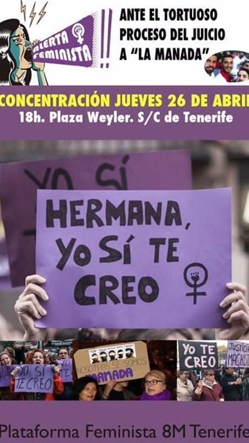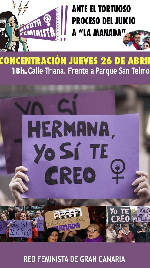 La red feminista de Gran Canaria y la de Tenerife han convocado concentraciones para la tarde de este jueves en apoyo a la víctima del caso La Manada y ante el proceso judicial que tachan de “tortuoso”.