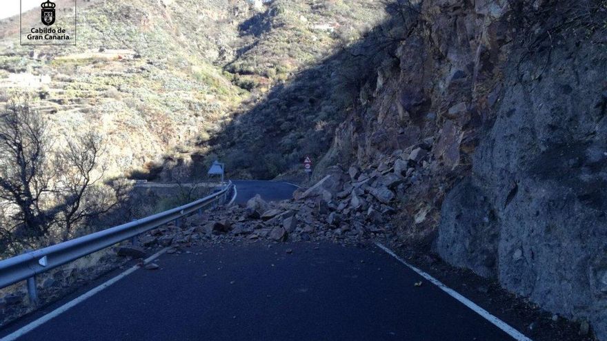 Ante el riesgo de derrumbe el Cabildo de Gran Canaria se ha visto obligado a impedir el tráfico y el servicio de Carreteras de la Corporación Insular se encuentra en estos momentos trabajando en la limpieza y el acondicionamiento de la vía.