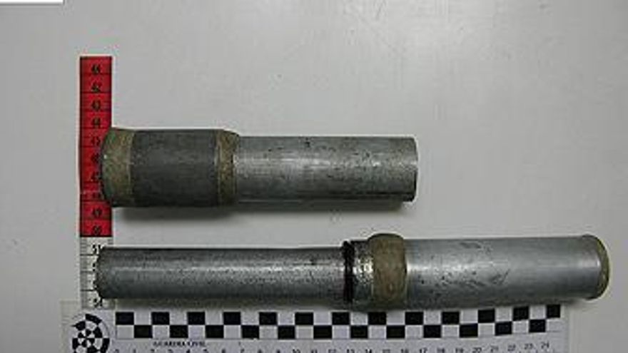 Los agentes de la Policía Local procedieron en ese momento a identificársele y a realizarle un cacheo superficial. Fruto del mismo le encontraron entre sus pertenencias un arma de fuego de fabricación casera que consistía en dos tubos cilíndricos y varios cartuchos del calibre 12 manipulados.
