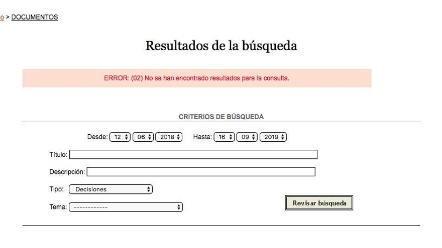 El lunes 16 de septiembre, la institución reconocía a esta redacción que no había publicado en su página web ninguna resolución, aunque aseguraba que sí se habían adoptado, sin ofrecer ningún dato ni las áreas concretas. Achacó esta situación a “la implementación de un nuevo software de tramitación de expedientes y la actualización del portal, que actualmente está en proceso” y garantizó que, cuando se publicara la nueva imagen de la web, se subirían las resoluciones. Sin embargo, recientemente han registrado las decisiones adoptadas sin renovar la imagen del portal .