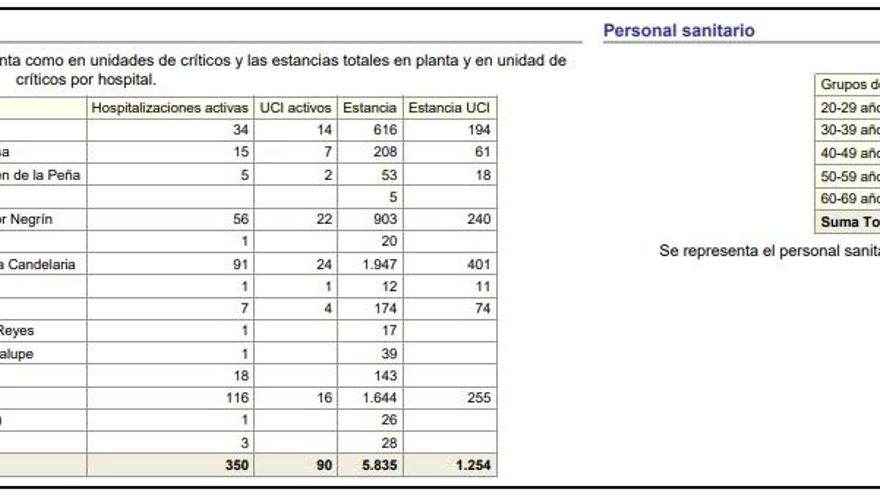 El informe epideomológico del Gobierno de Canarias también detalla el número de ingresos por complejos hospitalarios. De los 350 casos activos, el 68% está siendo atendido en centros de la provincia de Santa Cruz de Tenerife. En el Hospital Universitario de Canarias (HUC) permanecen ingresadas por el coronavirus 116 personas, un tercio del total del Archipiélago. De ellas, 16 están en la unidad de cuidados intensivos. La Candelaria contabiliza más pacientes en estado crítico, 24, aunque menos ingresos, 91, una cantidad que, aun así, supera la suma de los pacientes hospitalizados por esta causa en los dos complejos de referencia de la isla de Gran Canaria (el Doctor Negrín, con 56, y el Insular Materno Infantil, con 34).
