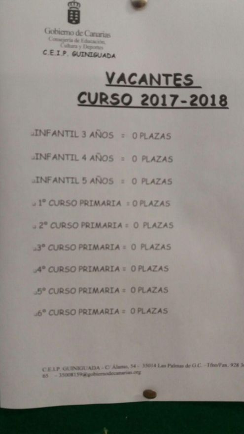 Sobre este último punto, Luzardo recordó a Monzón que tanto la dirección del centro, como la página web de la Consejería informaron en el mes de marzo que no había plazas vacantes en el CEIP Guiniguada. “Es una pena, porque este es un colegio relativamente nuevo, está bien conservado, tiene canchas deportivas, comedor, bibliotecas, gimnasio”, apostilló.