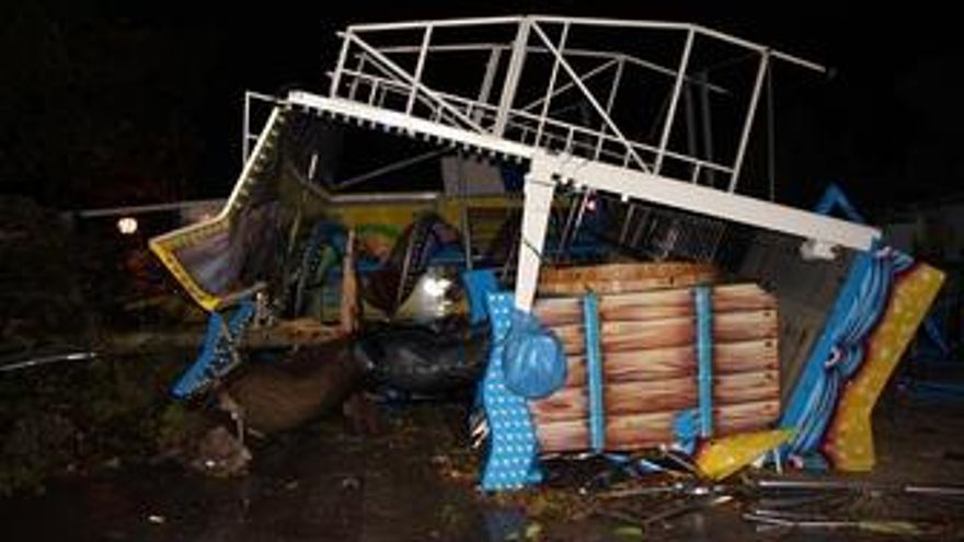 Las consecuencias de esta tromba no se hicieron esperar. En Alzira, localidad que este fin de semana acogía sus fiestas, un tornado derribó varias atracciones del recinto ferial, entre ellas la noria, y dejó a 35 personas heridas. Asimismo, 22 familias de feriantes tuvieron que pasar la noche en un hotel.