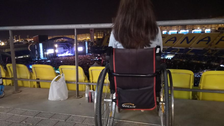 El Festival Sun & Stars Gran Canaria, celebrado el pasado sábado en el Estado de Gran Canaria, ha dado mucho que hablar en las redes sociales en estos días, entre otros asuntos, por la ubicación que se le dio a las personas con movilidad reducida (PMR). En la sexta planta, muy lejos del escenario, donde no se veía nada y con muy mala acústica, así define la zona Silvia Santana, una de las afectadas. “Después de dar muchas vueltas nos pusieron allí, se acordaron en el último momento de las personas con discapacidad”, asegura. Sin embargo, uno de los organizadores del espectáculo, Alejandro Duque, asegura que esa localización fue la establecida en el plan de evacuación del recinto desde un principio.