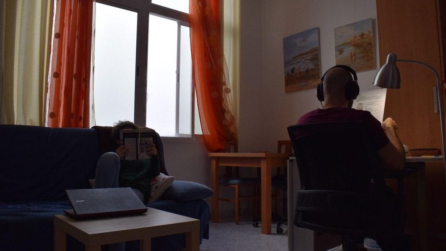 En otra situación está Iris. Vive en un ático, en el municipio grancanario de Telde, con su pareja y sus dos niñas de cinco y diez años. Ella sigue trabajando desde casa, él acaba de entrar en un ERTE (Expediente de Regulación Temporal de Empleo). Juntos buscan la forma de conciliar el teletrabajo, las tareas del colegio, de casa y las alternativas para sobrellevar mejor esta cuarentena. Sus hijas lo llevan “muy bien” y están encantadas de estar en casa con papá y mamá. Diferentes realidades para hacer frente -desde casa- a una crisis sanitaria sin precedentes en nuestro país.