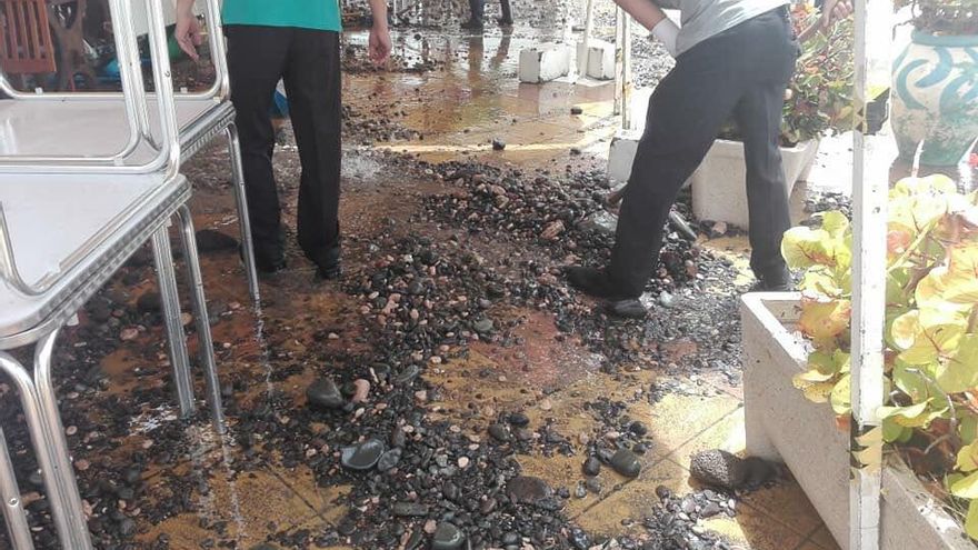 El fuerte oleaje ha golpeado este miércoles por la mañana a la Avenida de Arinaga, en Gran Canaria, que se ha llenado de piedras y se han producido algunos desperfectos, que obligaron a movilizar a los equipos de limpieza del Ayuntamiento de Agüimes.