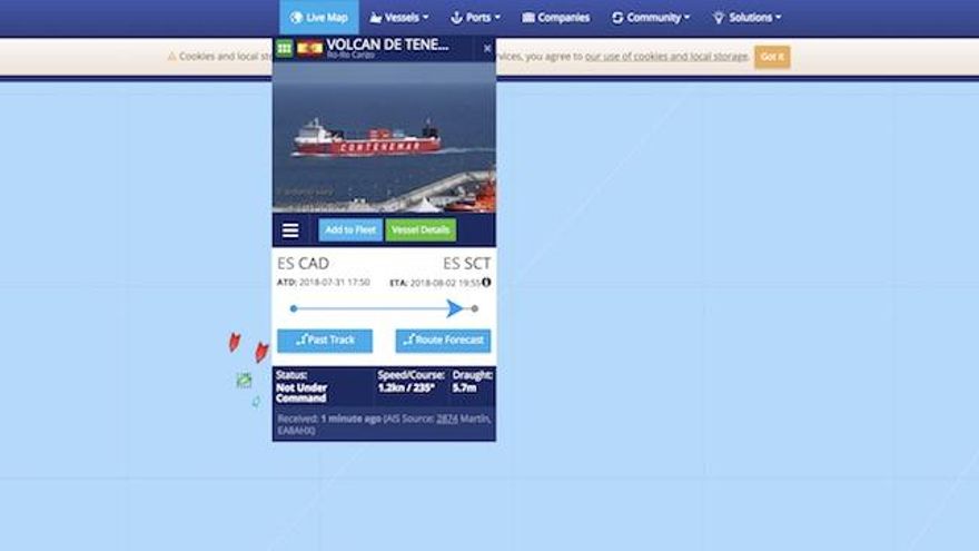 En concreto, las llamas se han iniciado en la sala de máquinas del ferry de carga que hacía la ruta entre Cádiz y Tenerife, lo que impide mantener el control del buque.