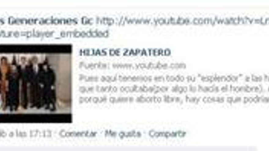 La cantera grancanaria de los populares ha publicado una entrada en este plataforma en la que difunde un vídeo colgado en Youtube a propósito de esta fotografía, junto a un texto en el que se puede leer: “Pues aquí tenemos en todo su 'esplendor' a las hijas de Zapatero, que tanto ocultaba (por algo lo hacía el hombre). Ahora entenderéis por qué quiere aborto libre, hay cosas que podrían haberse evitado”.