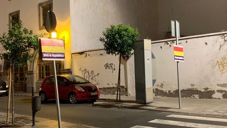 Las Palmas de Gran Canaria ha amanecido este jueves con cientos de pancartas con la bandera republicana, una acción promovida por un grupo de trabajadores y trabajadoras, profesionales y artistas de diferentes disciplinas que muestran así su “defensa de los valores republicanos y mejora de la calidad democrática” en la fecha en la que se cumplen 83 años del golpe de Estado del 18 de julio de 1936 que dio paso a la dictadura franquista.