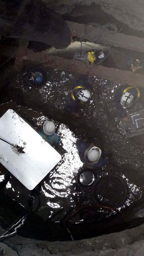 El arqueólogo explica las labores en los pozos se dificultan debido a que se sufren inundaciones de manera constante. En este momento, se encuentran trabajando en ellos cuatro miembros de la empresa adjudicataria, dos poceros y un arqueólogo y una arqueóloga del Cabildo.