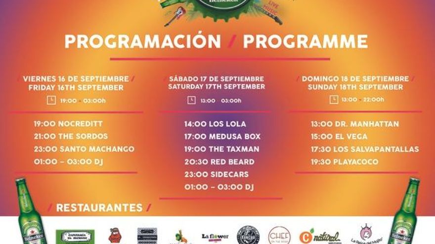Del 16 al 18 de septiembre la trasera del Parque Santa Catalina contará con tres jornadas de conciertos con la actuación de, entre otros, Sidecars, Santo, Machango, Los Lola o El Vega