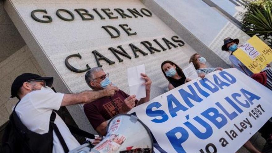 Un centenar de manifestantes han permanecido dispersos ante la sede del Gobierno canario, a cuyo nuevo titular de Sanidad, Blas Trujillo, dan un margen de confianza a la espera de “si va a defender al sector público”.