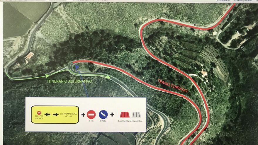 En un comunicado, el consejero insular de Obras Públicas e Infraestructuras, Ángel Víctor Torres, informa de que los trabajos que se acometen son para demoler uno de los muros de contención de la vía.