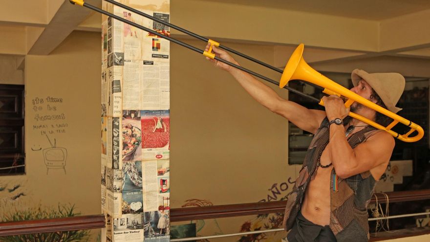 Ismael está desde los primeros días en el edificio y narra que está en él porque no había encontrado nada para seguir formándose, la única opción que tenía era en el sur de la isla donde existe una escuela del circo. Ahora, al igual que él, están viniendo cada vez más artistas callejeros a instalarse, aunque algunos son sólo de paso. “Mucha mezcla artística junta puede crear algo grande” sostiene uno de los habitantes. Por el momento entre las paredes del enorme edificio amarillo está comenzando a latir algo, aunque sólo sea los frescos y mosaicos que inundan las mismas.