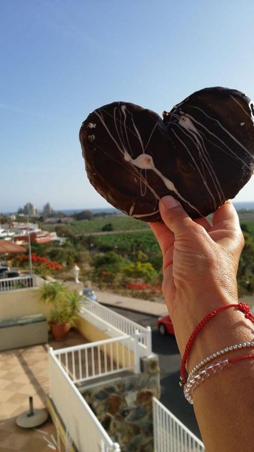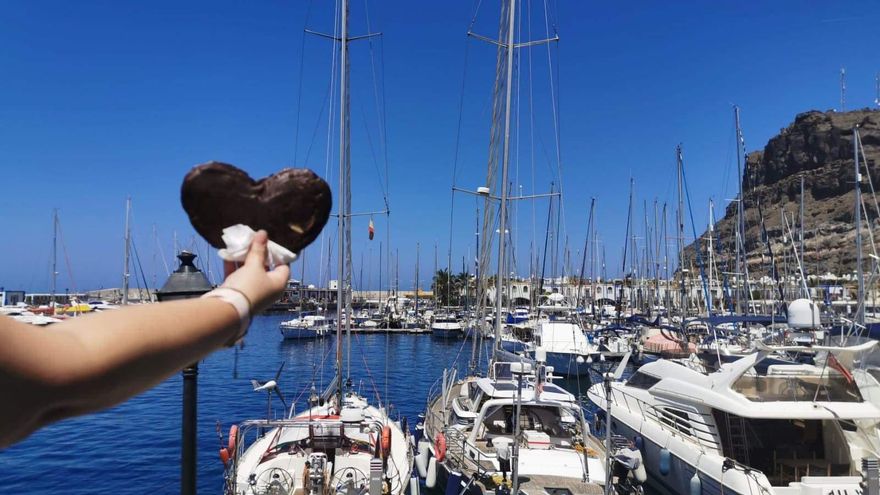En ese momento surgió la idea de La Palmera Viajera. A través de las redes sociales lanzó un reto que se ha hecho viral. Con sus tradicionales palmeras de chocolate, rellenas de crema o Nutella, se propuso viajar por toda La Aldea a través de imágenes subidas a redes sociales por sus clientes con el dulce en la mano y un paisaje detrás. El desafío consiste en adivinar de qué lugar se trata. La experiencia ha sido tan bien recibida que comenzó a caminar por toda la Isla. Le envían fotografías desde Agaete, Moya, Telde, Las Palmas de Gran Canaria, Mogán o San Bartolomé de Tirajana, entre otros, para hacerse con la mayor cantidad de reacciones en la red social. La pastelería aldeana ha conseguido hasta cambiar la costumbre de que las velas de cumpleaños se soplen sobre una tarta para hacerlo sobre una palmera viajera.