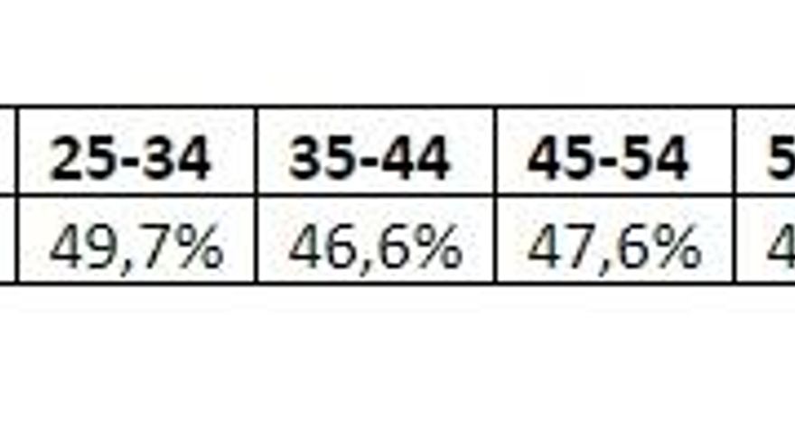 Hay que resaltar que el sentimiento identitario es mucho mayor entre los jóvenes, once puntos por encima de la media, como refleja la siguiente tabla.