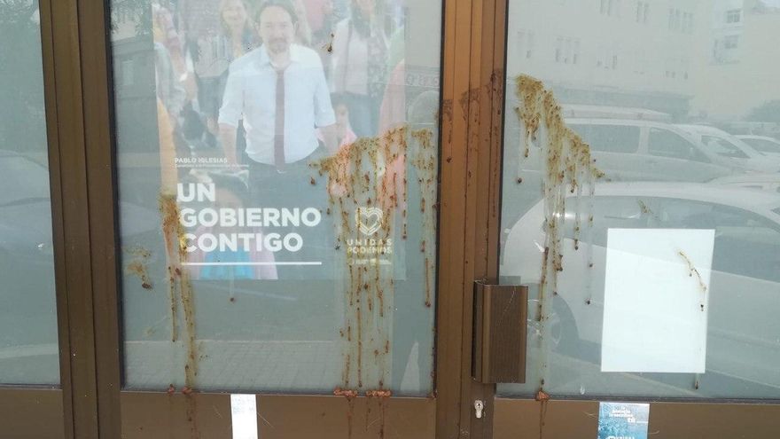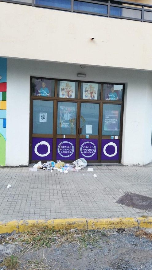 La sede de Podemos del municipio de Arucas -en el norte de Gran Canaria- sufrió en la madrugada de este sábado un nuevo ataque de excrementos a sus ventanas y la puerta de acceso al local. Es el segundo asalto que sufre en menos de un mes y el cuarto en dos años. “Desgraciadamente parece que esto se ha convertido en algo habitual”, denunció la formación morada en Twitter.