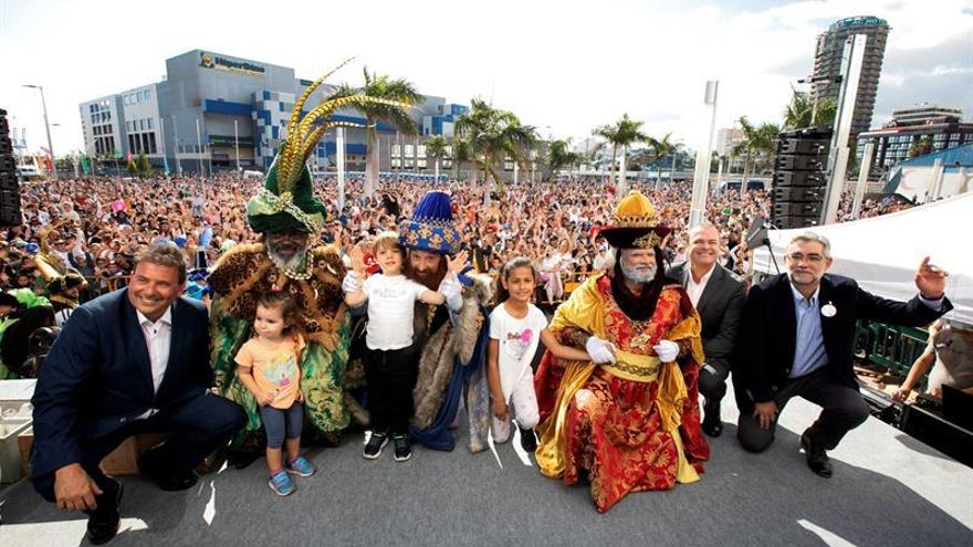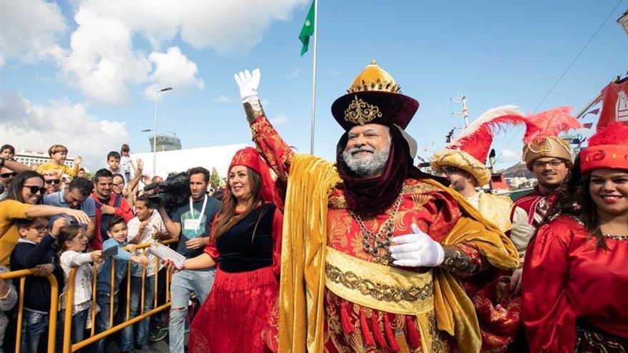Los Reyes Magos de Oriente han atracado este domingo en la capital grancanaria, por primera vez en el recuperado entorno del muelle Sanapú, donde han sido recibidos por miles de niños y niñas.