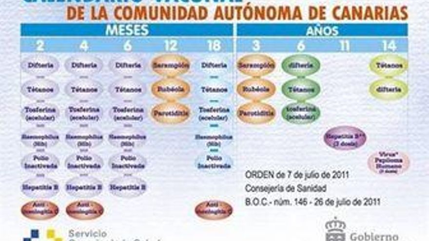La Dirección General de Salud Pública del Servicio Canario de la Salud distribuirá en septiembre folletos explicativos , carteles y calendarios de bolsillo en todos los centros de salud del Archipiélago, con el fin de dar a conocer con detalle los cambios en el Calendario Vacunal en la Orden de 7 de julio de 2011.
