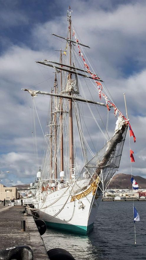 Esta es la cuadragésima novena vez que el barco llega a la isla de Gran Canaria en su larga historia de navegación por el mundo y lo hace al mando del comandante Enrique Torres Piñeyro, un capitán de navío que ya estuvo destinado a bordo del buque-escuela como oficial durante el LIX Crucero de Instrucción y la séptima vuelta al mundo.