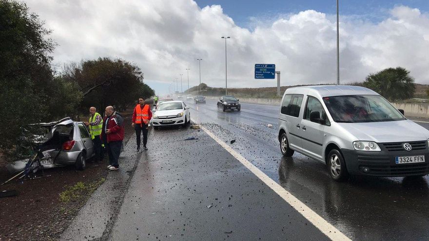Además, las precipitaciones caídas en el sureste de Gran Canaria causaron un accidente de tráfico en el que resultaron heridas leves dos personas.
