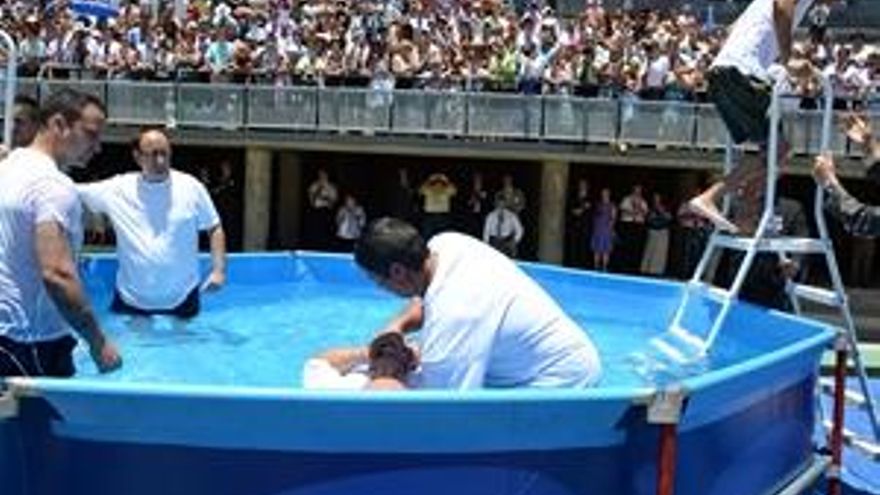 Las 67 congregaciones de testigos de Jehová del Archipiélago canario se dieron cita durante este fin de semana en el estadio de Gran Canaria. Tras casi 30 años realizando congresos provinciales en Tenerife y Gran Canaria, en los llamados “Salones del Reino”, se reunieron para celebrar una gran asamblea con motivo de profundizar en la palabra de la Biblia. A pesar del calor, los fieles llenaron la tribuna del estadio, sin perder detalle a las diferentes charlas, escenificaciones y presentaciones que han tenido lugar durante el fin de semana, en esta asamblea cuyo tema central ha sido “Venga a tu reino”.
