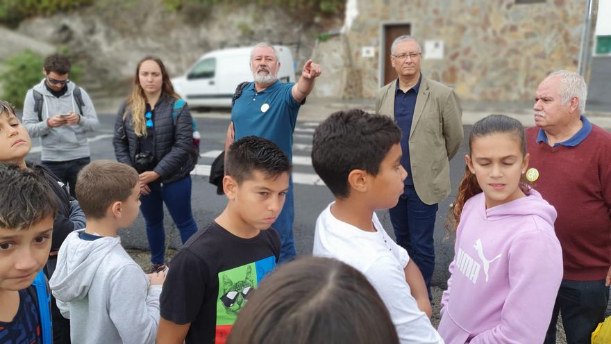 Durante la visita, Henríquez mostró a los niños y niñas el camino real de Gáldar, que llevaba hacia uno de los municipios más importantes y con más historia del norte de la Isla. En este barrio, el agua ha sido un bien muy importante y fruto de ello se produjo lo que Henríquez recuerda como la “guerra del agua”.