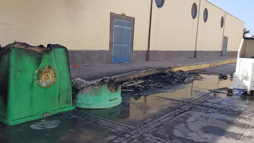 Varios contenedores y algunos residuos situados junto a la calle Camagüey, en El Tablero, en el sur de la isla de Gran Canaria, han ardido a primera hora de este domingo, 3 de noviembre. El fuego, que ha arrasado al menos dos contenedores de reciclaje de vidrio, ha provocado una gran columna de humo negro.